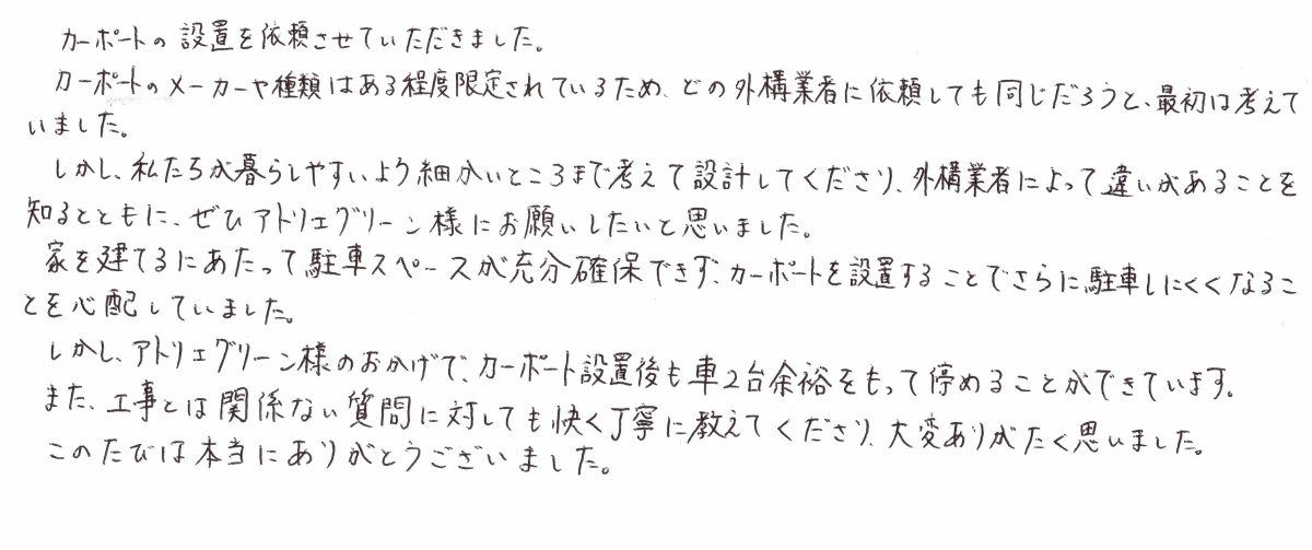 アトリエグリーンさんにやっていただけて本当に良かったです